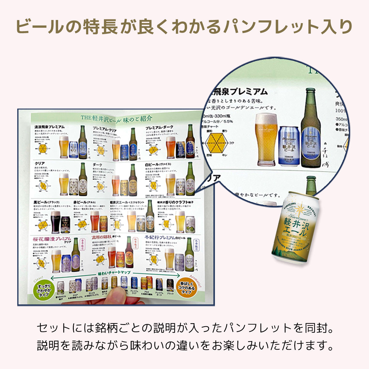 すべての銘柄の特長が記載されたパンフレットを見ながらそれぞれの味わいを飲み比べ!